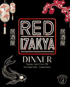 On Tuesday, April 22, we’re flipping the script with a one-night-only Izakaya Dinner—Japan’s late-night taverns, reimagined with RED’s signature edge.